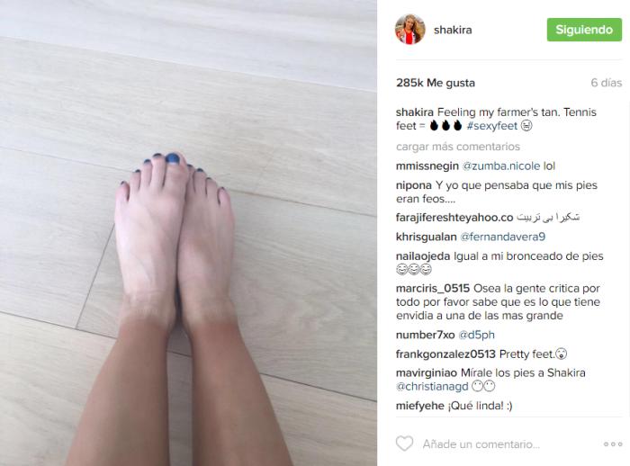 Shakira quiso compartir un momento de su vida con sus fieles y fue blanco de críticas ¿La razón? Nada tiene que ver con el color de uñas que escogió para la pedicure ¡Su bronceado dispar se llevó toda la atención! Y esa era la idea de la artista, quien anexo a la foto comentó “tennis feet” (pies de tenis).
