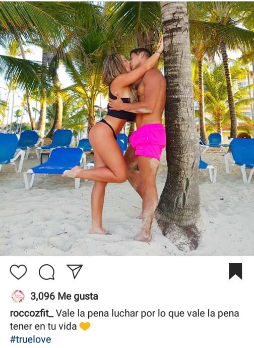 La modelo no se ha referido de forma oficial a este rumor, pero fue Rocco quien confirmó todo en redes sociales con una seria publicación. Se trata de una foto romántica, de un beso en una palmera, ambos en bikini y debajo del sol.