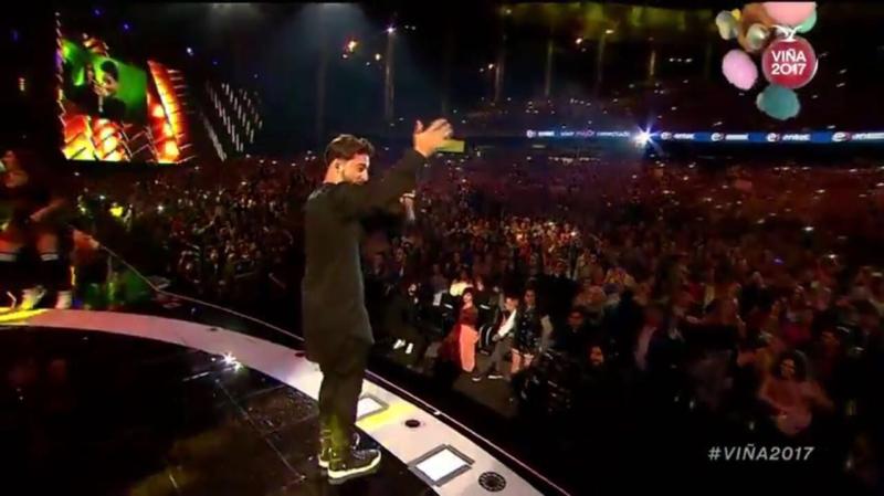 En el show de Maluma la artista permaneció sentada y a su lado Mario Domm de Camila en la misma actitud, en momentos donde la Quinta Vergara vibraba con las pegajosas canciones del colombiano que hacen que cualquiera mueva sus pies.