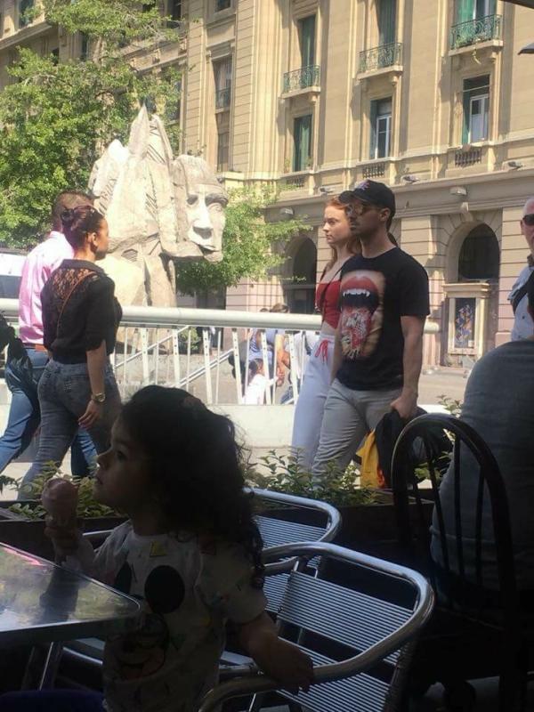 Joe Jonas y Sophie Turner están disfrutando de las calles de nuestro país, al menos así lo demuestran en sus redes sociales donde comparten distintas postales de la capital. Sin embargo, su paseo es altamente custodiado por guardias de seguridad, quienes protegen a la pareja de los fanáticos.