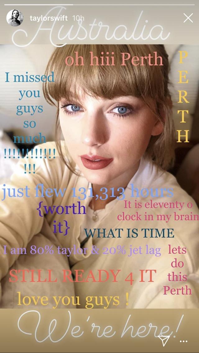 Pero no fue porque no quería estar, o no estuviera invitada. Al menos así lo dio a entender Swift con una historia en Instagram en la que anunciaba que estaba en Australia para dar un concierto.