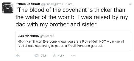 Por eso esta vez, Prince Jackson ha decido responder a un cruel tuit que decía “todos sabemos que eres un Rowe- Klein y NO un Jackson”.