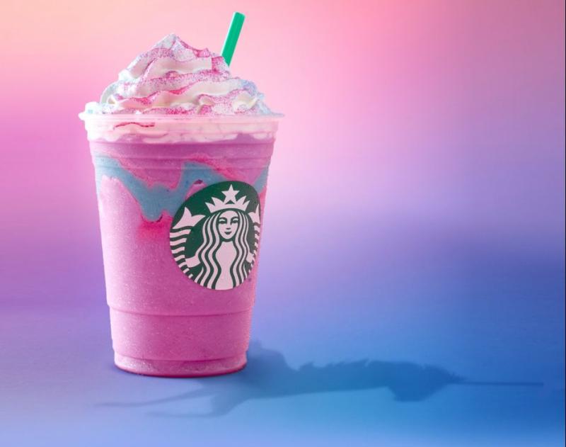 Tanto ha sido el boom que la cadena americana de cafeterías Starbucks lanzó hace unos meses una versión de su frappuccino –versión helada y con hielo picado del cappuccino– inspirada en el unicornio, llamada Unicorn Frappuccino. La bebida, que se vendió por una semana durante abril en Estados Unidos, Canadá y México, era morada con espirales azules y cuando era mezclada, cambiaba su color a rosado, para también dejar de ser dulce y afrutada y convertirse a un gusto ácido.