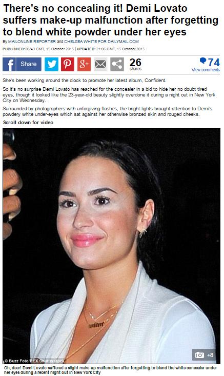 Algo faltó por terminar en el rostro de Demi Lovato, quien fue vista en plena promoción de Confident en Nueva York con una marca blanca alrededor de sus ojos.