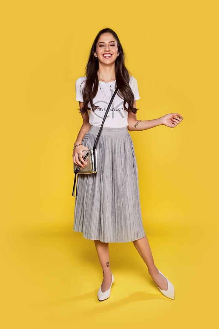 Los asuntos laborales incluyen eventos donde las miradas están puestas sobre ti y todas las asistentes ¿Quieres sorprender? Apuesta por una falda plizada, un clásico, acompañada de una polera gráfica con logo. Unos tacones blancos sumarán tendencia y varios accesorios plateados te harán lucir juvenil y chic.