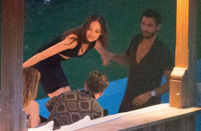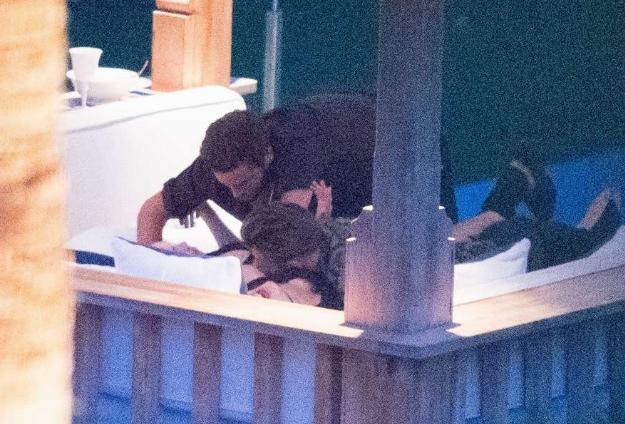 La flamante pareja fue captada por TMZ acostada en una cama, besándose, mientras al lado de ello estaban otros amigos.