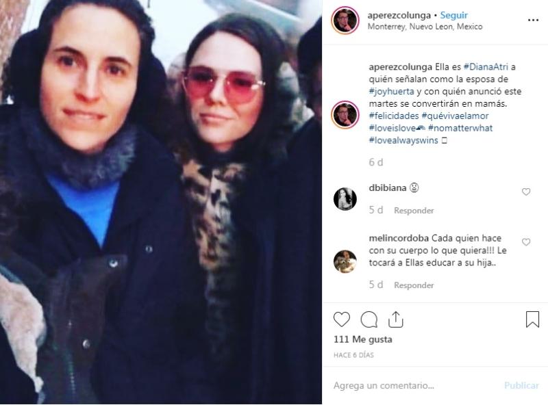 "Ella es Diana Atri a quién señalan como la esposa de Joy Huerta y con quién anunció este martes se convertirán en mamás", señala la publicación que compartió el comunicador.