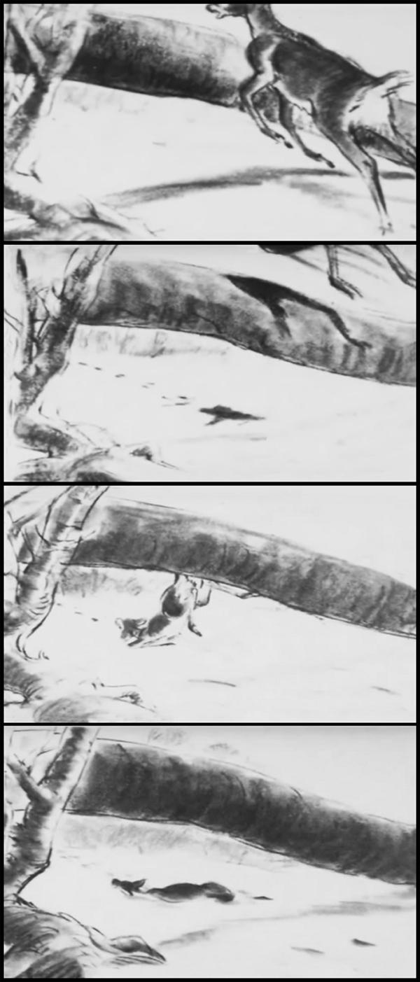 Hace poco se filtraron las imágenes de la muerte de la madre de Bambi, nunca antes vistas, ya que originalmente en la película estas se omiten, mostrando sólo al pequeño ciervo preguntando dónde está su mamá.