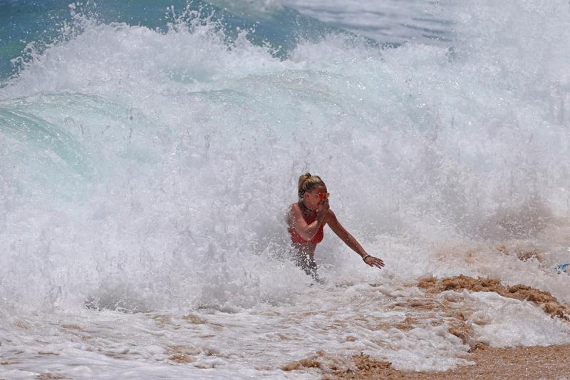 La cantante fue captada cuando una ola la dio vuelta y la mantuvo intentando salir del mar por cinco minutos.