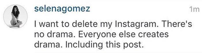 Luego escribe, ya en tono de amenaza “Quiero borrar mi Instagram, no tengo drama. Todos los demás crean dramas, incluyendo este post”.