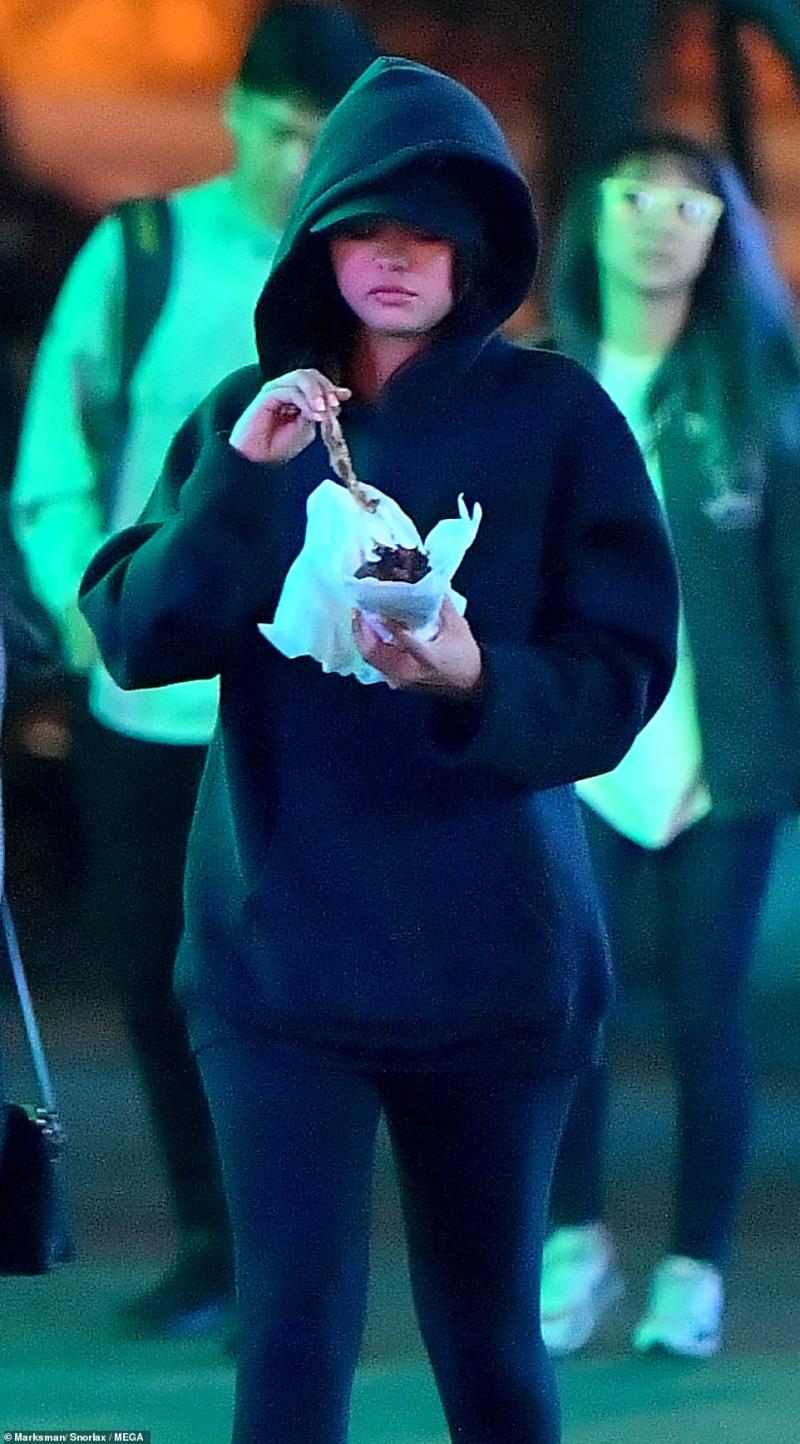 La ex chica Disney intentó pasar desapercibida vistiendo un polerón negro con capucha, sin embargo, igualmente fue reconocida por los astutos paparazis.