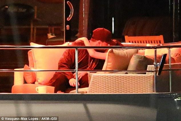 En las imágenes se puede ver a los tortolitos muy abrazados, besándose y disfrutando de la brisa marina en la terraza de la embarcación.