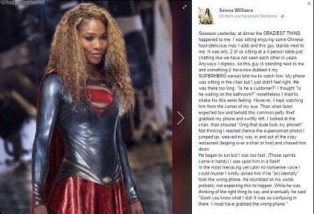 Serena Williams se convierte en heroína al recuperar su celular robado