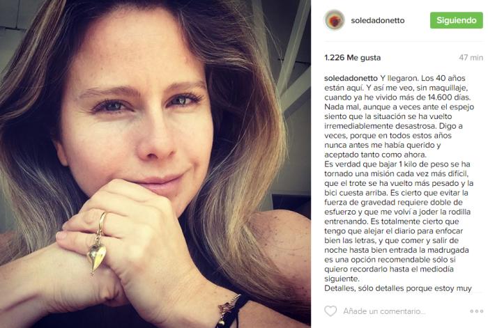 Soledad Onetto publicó foto al natural tras cumplir 40 años