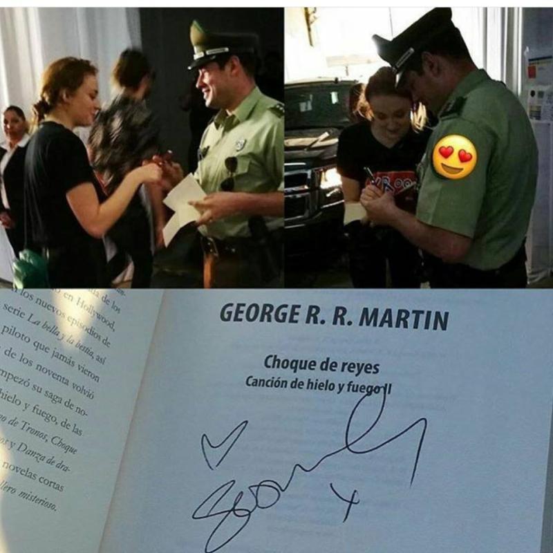 Pero toda esta polémica quedó atrás cuando antes de irse le autografió el libro "Canción de hielo y fuego II" a un carabinero ¡Adorable!