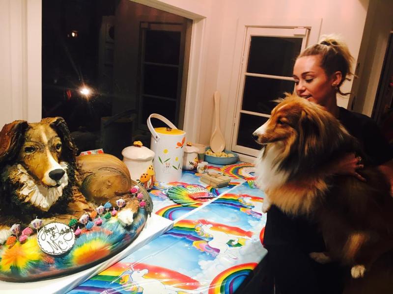 Sorprenden a Miley Cyrus con torta idéntica a su perrito Emu