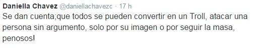 Su publicación desató una ola de cuestionamientos y bromas por sus dichos. Por lo mismo, Daniella decidió responder refiriéndose a sus logros en el extranjero. A esto se sumaron diferentes frases que continuaron la polémica inicial, claro que en evidente tono de broma.
