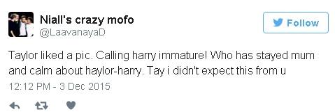 La parte final era referente a Harry Styles, lo que provocó más furia por parte de sus seguidoras, quienes al ver que Taylor Swift le puso “me gusta” a la publicación, empezaron atacarla por Twitter.