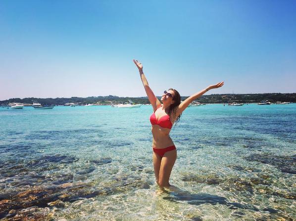 En un bikini rojo y sin maquillaje se luce en la playa ¡Como siempre!