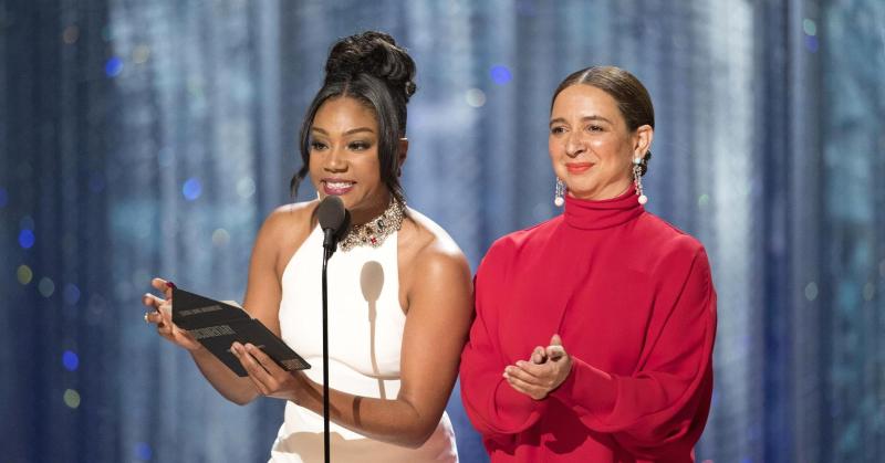 La actriz Tiffany Haddish fue la encargada de presentar a los nominados en la categoría Mejor Cortometraje junto a Maya Rudolph en la última entrega de los Premios Oscar, pero lo que más llamó la atención fue su espectacular vestido blando de cuello alto del diseñador Alexander McQueen.