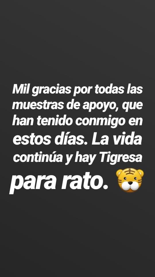 "Mil gracias por todas las muestras de apoyo, que han tenido conmigo todos estos días. La vida continúa y hay Tigresa para rato", escribió.