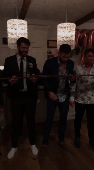 Eso es lo que se puede ver en las imágenes compartidas por el joven surfista. En una primera historia aparece Liam, vestido de traje, tomando shots con sus amigos y algunos familiares. Está vestido con traje, y con zapatillas.