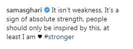 Tras conocerse la situación, Sam Asghari, el novio de la estrella pop, publicó un potente mensaje de apoyo para su pareja: "No es debilidad, es una señal de absoluta fortaleza. La gente debería sentirse inspirada por esto, al menos yo lo estoy #stronger".