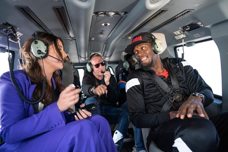El reconocido atleta jamaicano disfrutó este domingo su estadía en nuestro país con una bienvenida por parte de la familia PUMA paseando en helicóptero con los embajadores Martín Cárcamo y Kel Calderón.