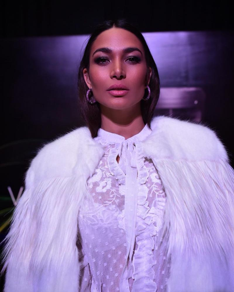 Lisandra aparece con un look de maquillaje con brillo en los ojos, cejas bien peinadas y enfatizadas con lápiz, partidura al medio y el cabello hacia atrás para dejar ver su rostro.