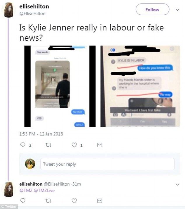 Esta especulación comenzó una vez que un funcionario del hospital le contara a un conocido que Kylie había ingresado como paciente. Dicha conversación fue publicada en la página de Facebook The Morning Breathers y se hizo viral.