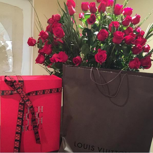 ¡La suerte de la modelo! Rosas rojas, Carolina Herrera y Louis Vuitton.