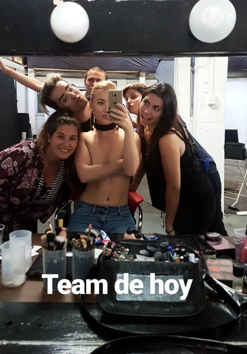 Vesta Lugg volvió a Chile y de inmediato partió a una producción fotográfica. La artista entregó un adelanto en redes sociales de su trabajo sorprendiendo con un espontáneo topless en compañía de su equipo.