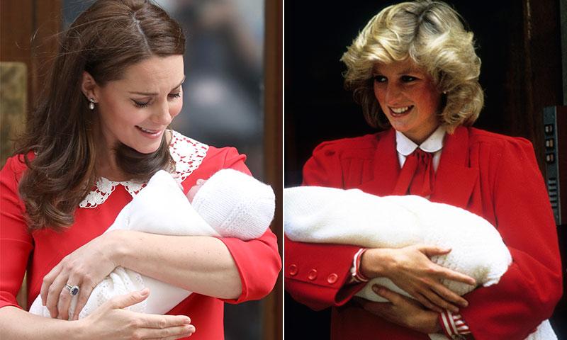 Cuando horas después de haber dado a luz al Príncipe Louis, Kate Middleton apareció frente a las cámaras para presentarlo, todos la compararon de inmediato con la princesa diana, y el look que ella utilizó para presentar al príncipe Harry, en 1983.