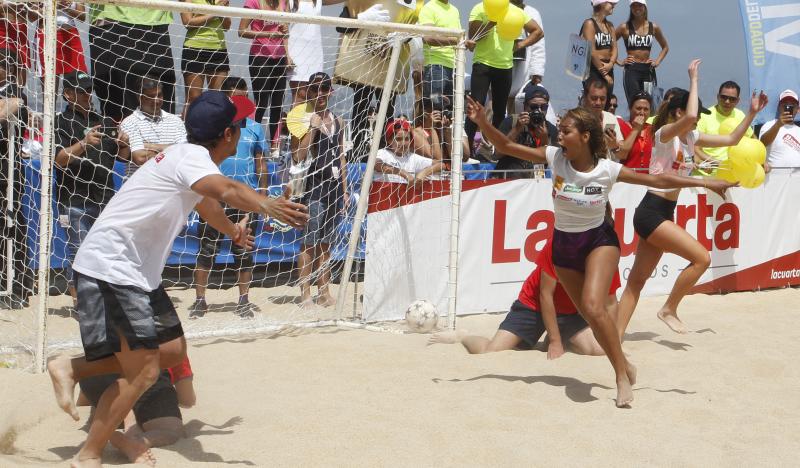 Se trata de una de las pruebas más llamativas que ha tenido la competencia por el reinado del Festival de Viña del Mar 2018. El diario “La Cuarta” organizó un partido de fútbol playa, en el cual se enfrentaron los aspirantes en dos equipos.
