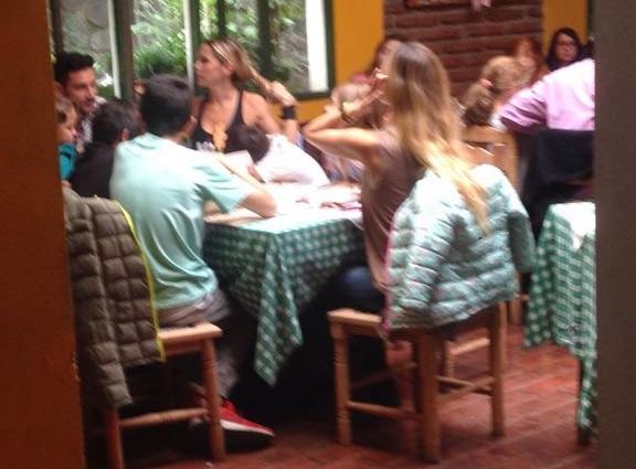 La pareja celebró junto a los hijos de la rubia en el restaurant Doña Tina, en Lo Barnechea, este domingo, hasta donde llegaron con los 3 hijos de la actriz, y a una amiga que también asistió con sus pequeños.