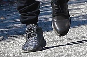 Zayn estaba usando un botín en un pie, y una zapatilla en el otro ¡Por lo menos eran del mismo color!