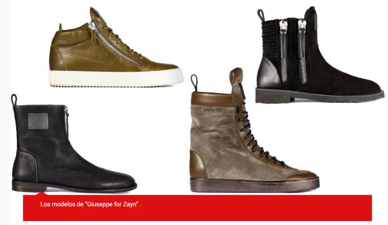 “Giuseppe for Zayn” es la línea en que el joven de 24 años diseñó dos zapatillas y dos botines que reflejan su estilo. Al respecto opinó en un comunicado que “creo que el estilo viene de correr riesgos, ser audaz y no tener miedo de expresarse. Encuentro que Giuseppe hace esto con sus colecciones y yo trato de hacer lo mismo en la música”.
