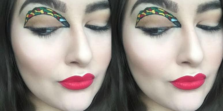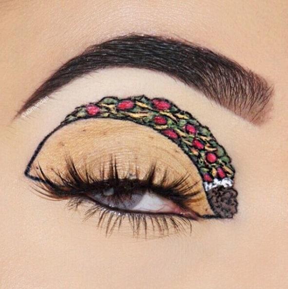 La idea es maquillar el parpado como la masa del taco, y luego dibujar los agregados ¿Lo intentarías?