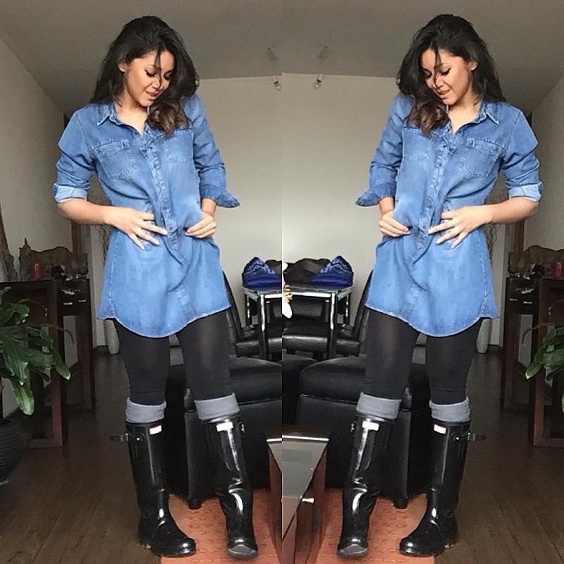 El denim sigue marcando tendencia, y para estos días fríos se puede combinar con pantys y botas, como lo hizo la ex chica Yingo.