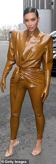 Kim Kardashian sorprende con su gusto por el total látex, textura que no ha abandonado durante su estadía en Paris, en el marco de la semana de la moda.
