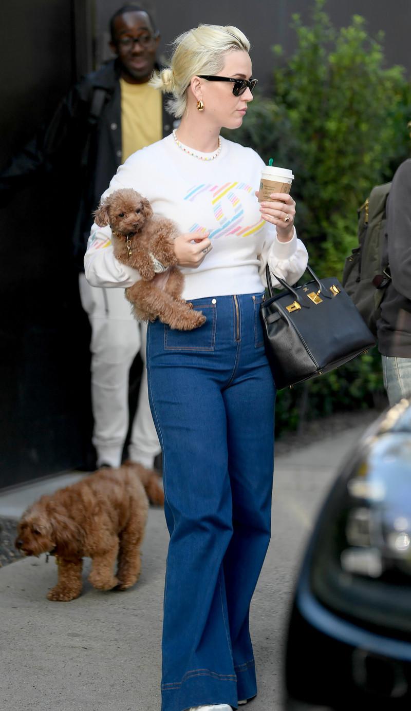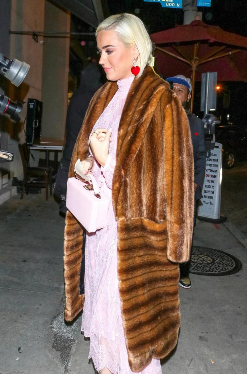 En la misma época, la intérprete de “Firework” optó por un abrigo de satin oversize en el que ni siquiera tenía que hundir la guatita.