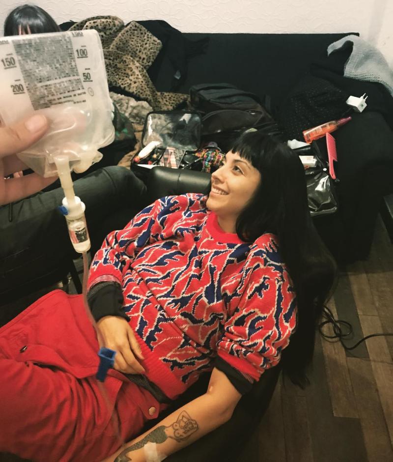 Mon Laferte preocupó a sus fanáticos con una imagen en Instagram, sonriente, pero poniéndose suero a la vena ¿La razón? la gira "Amárrame" le pasó la cuenta...