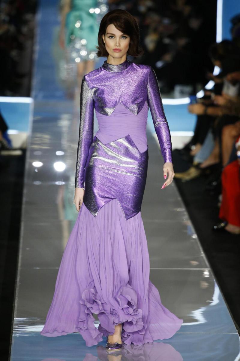 La colección de otoño de la casa de modas está marcada por un futurismo con toques retro, que entregó muchos trajes de dos piezas, cierres, sombreros y colores fuertes.