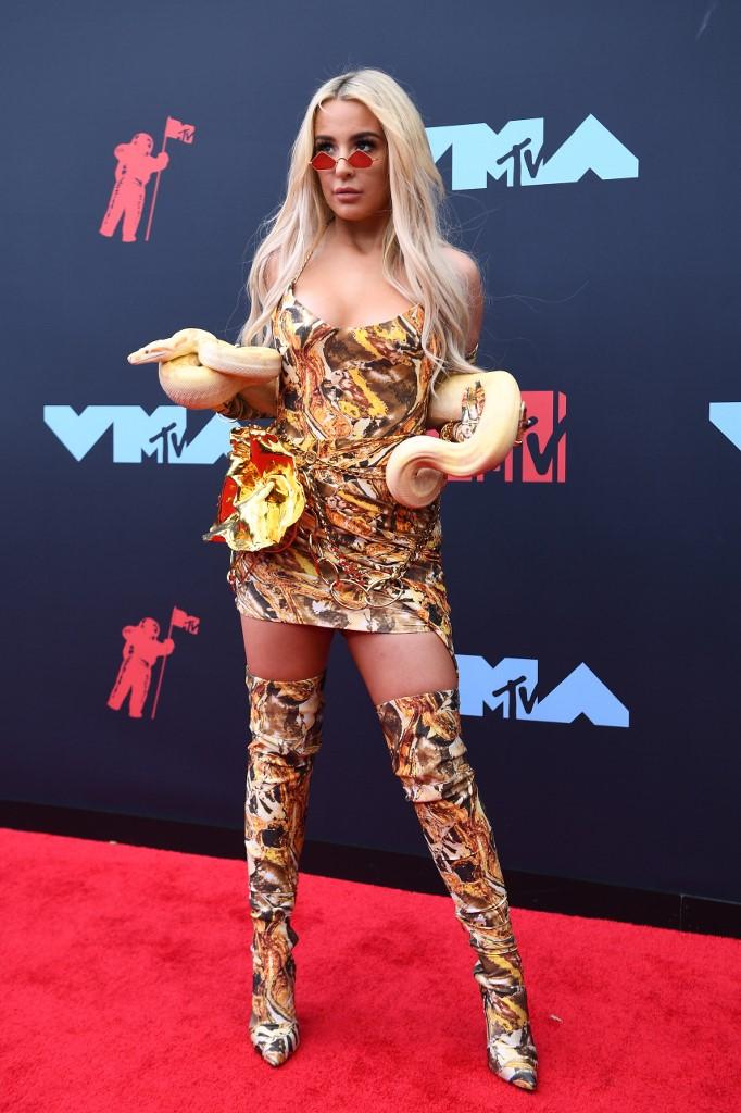 Mucho brillo, plumas y ¡hasta serpientes! Esos fueron algunas de las claves para llamar la atención en la alfombra roja de los premios MTV 2019.