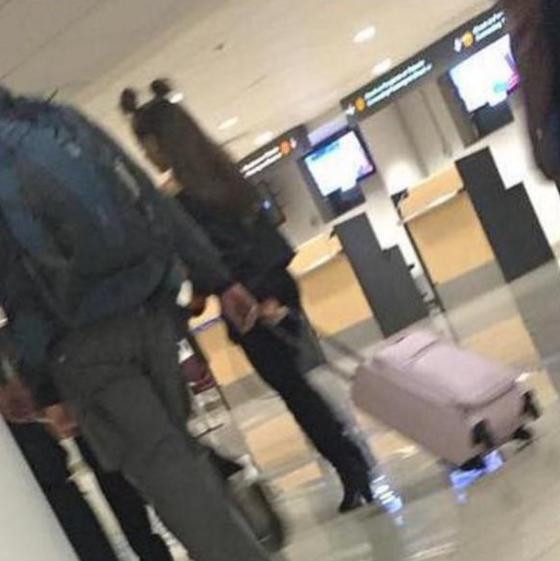 La ex chica Nickelodeon apareció usando dos medios tomates en el pelo, pantalones negros una polera de tiritas y una chaqueta negra encima. Además, ella misma arrastraba su maleta de mano rosada.