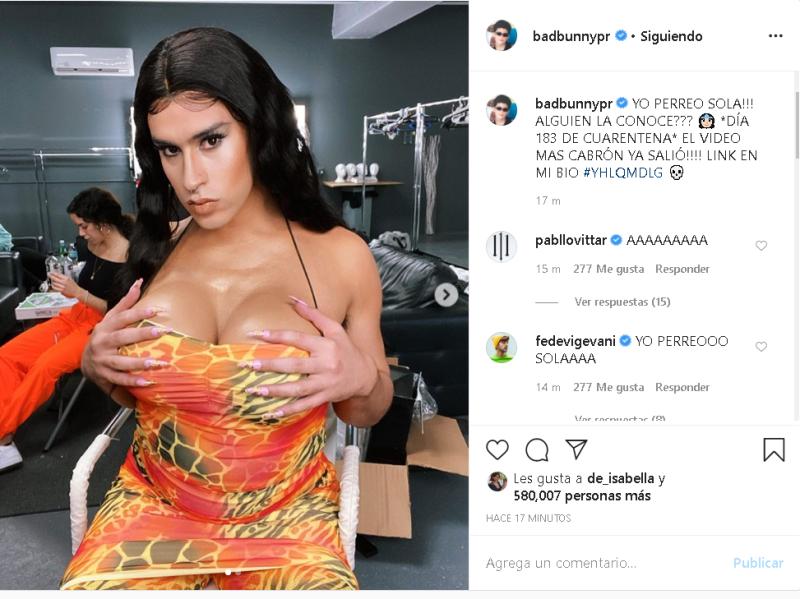 El intérprete de “Bichiyal” subió a su cuenta de Instagram una serie de fotos donde aparece personificado de mujer para anunciar que el video del hit ya estaba en línea.