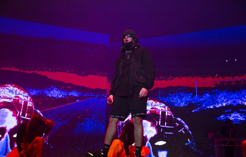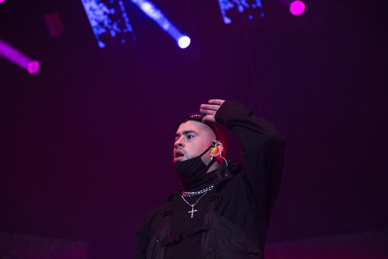 La noche del miércoles, el puertorriqueño Bad Bunny llenó el Movistar Arena para realizar el primero de los dos shows fijados en Santiago. A pesar de sus 45 minutos de retrasos la fanaticada coreó todas sus canciones, abrió con "Ni bien ni mal" con un look que ya es carecterístico en las alfombras rojas por las que ha desfilado, con mascarilla negra y cubriendo completamente su rostro.