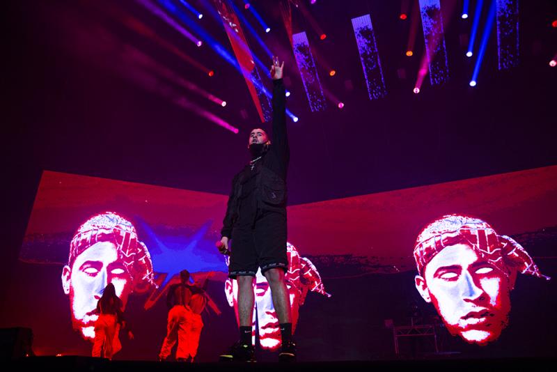 Siendo acompañado por un cuerpo de baile y su Dj. El conejo malo hizo una gran fiesta en su show en la cúpula, la pirotécnia y un escenario con pantallas que nos transportaban a las temáticas de sus canciones, hacen que el trapero sea uno de los favoritos en los rankings y premiaciones actuales en el mundo de la música internacional. Este viernes es segundo show en nuestra capital que sin duda muchos se repetirán el plato y otros vibrarán con temas como "MIA", "Otra Noche en Miami", "Si Estuviésemos Juntos", "Solo de mi", "te boté" y su último gran éxito "Callaita"
