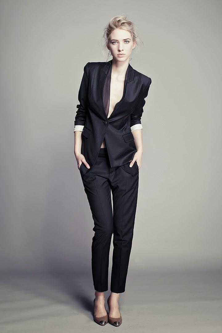 Lo que hace la modelo de Victoria's Secret es innovar con osadía y mezclar un look de día con este guiño del nuevo traje elegante.