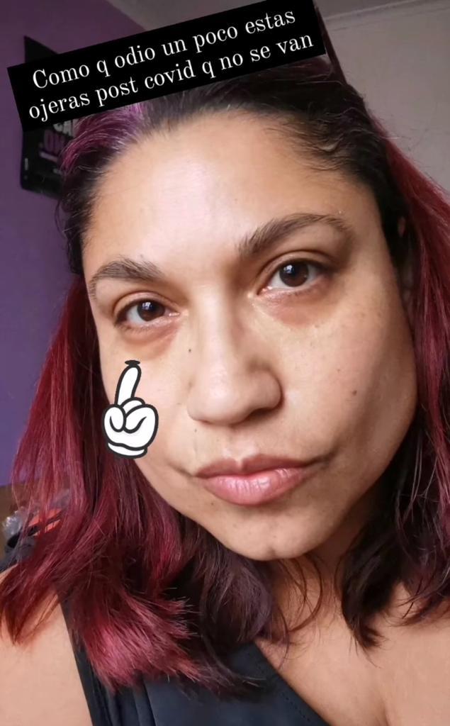 “Como que odio un poco estas ojeras post Covid que no se van”, escribió la periodista en una selfie que publicó es las stories de su cuenta de Instagram.